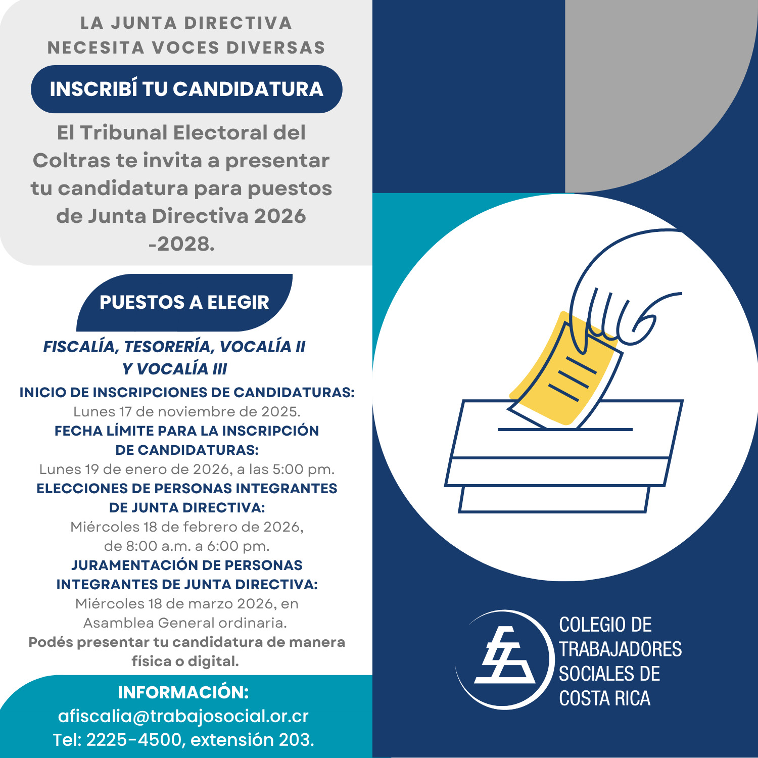 El Colegio de Trabajadores Sociales de Costa Rica es un ente público no estatal, creado en el año 1967 y regido por la Ley Nº 3943 del mismo año. Desde su fundación el colegio promueve, dentro de su ámbito de acción, el bienestar de sus agremiados y de la sociedad costarricense a través del desarrollo y actualización profesional, la fiscalización de la profesión y la implementación de políticas y estrategias que buscan mejorar la calidad de vida de las y los ciudadanos.