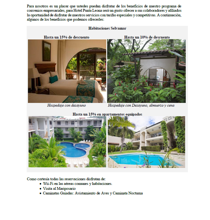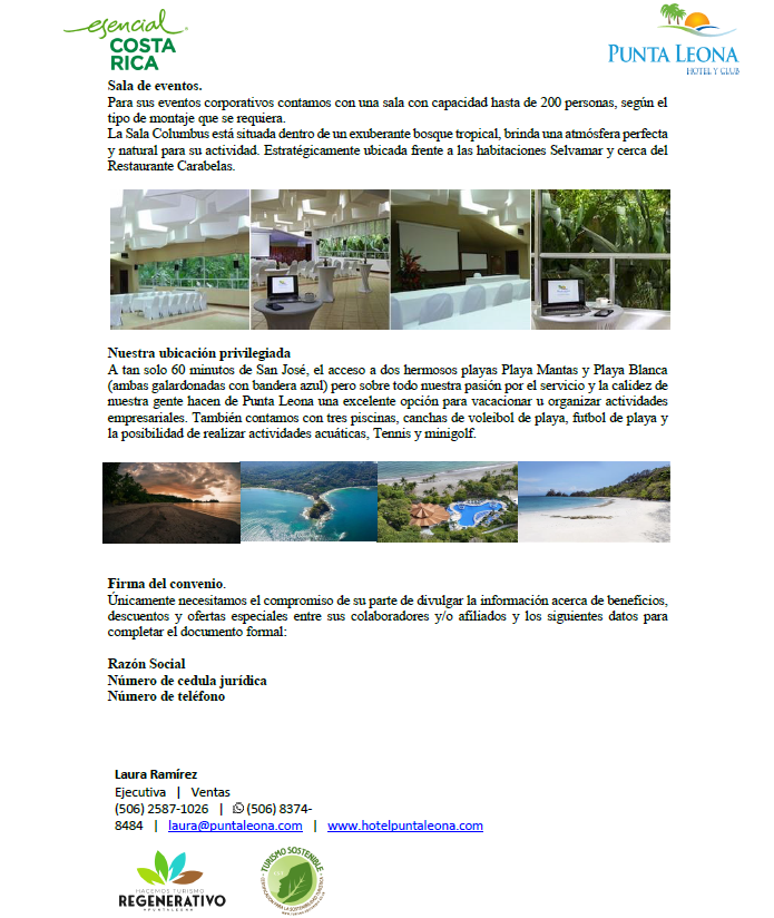 Las reservas solo deben ser gestionados a través de estos contactos, reservas en pagina web o canales de internet no aplican beneficio de convenio.